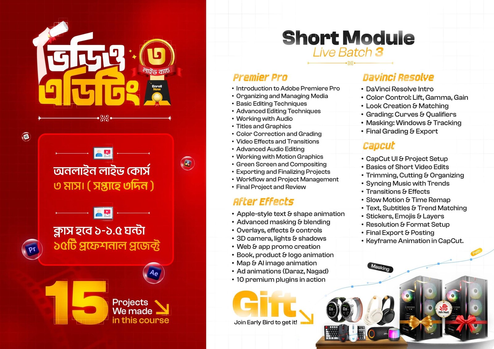 হ্যাঁ, প্রিমিয়ার প্রো, আফটার ইফেক্ট, এবং ক্যাপকাট সফটওয়্যার ইনস্টল করার জন্য গাইডলাইন এবং প্রয়োজনীয় সহায়তা দেওয়া হবে।